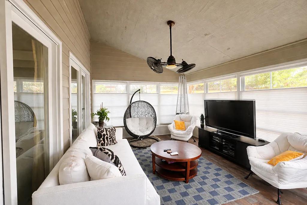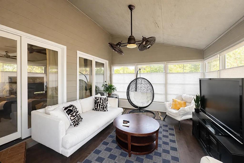 From the moment you arrive, you are greeted by a charming rocking chair front porch, perfect for enjoying quiet mornings and relaxing evenings surrounded by nature.