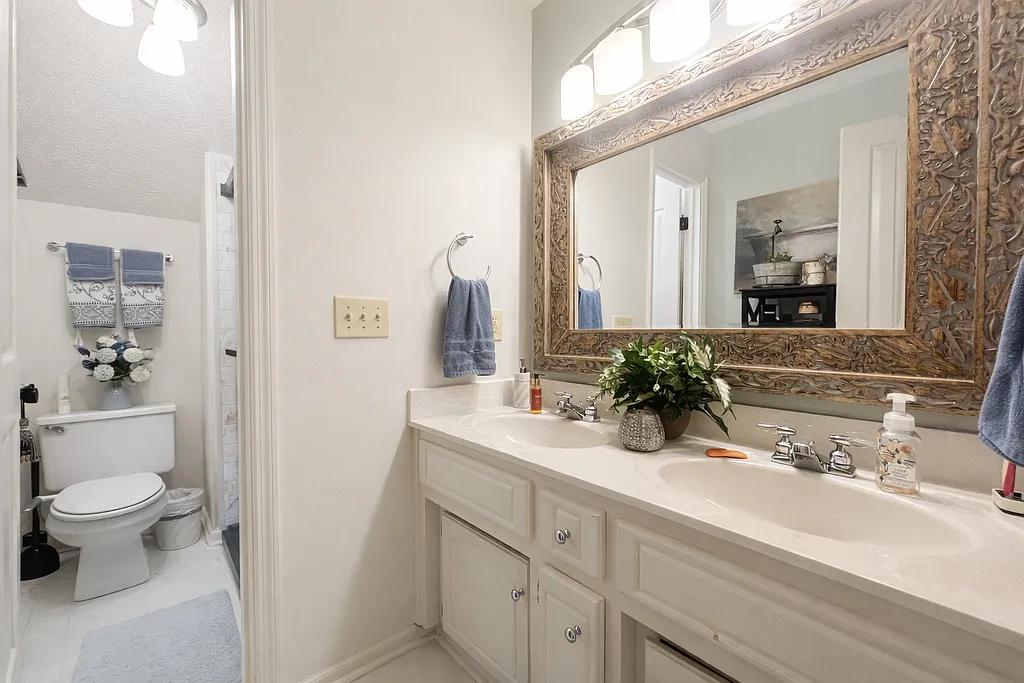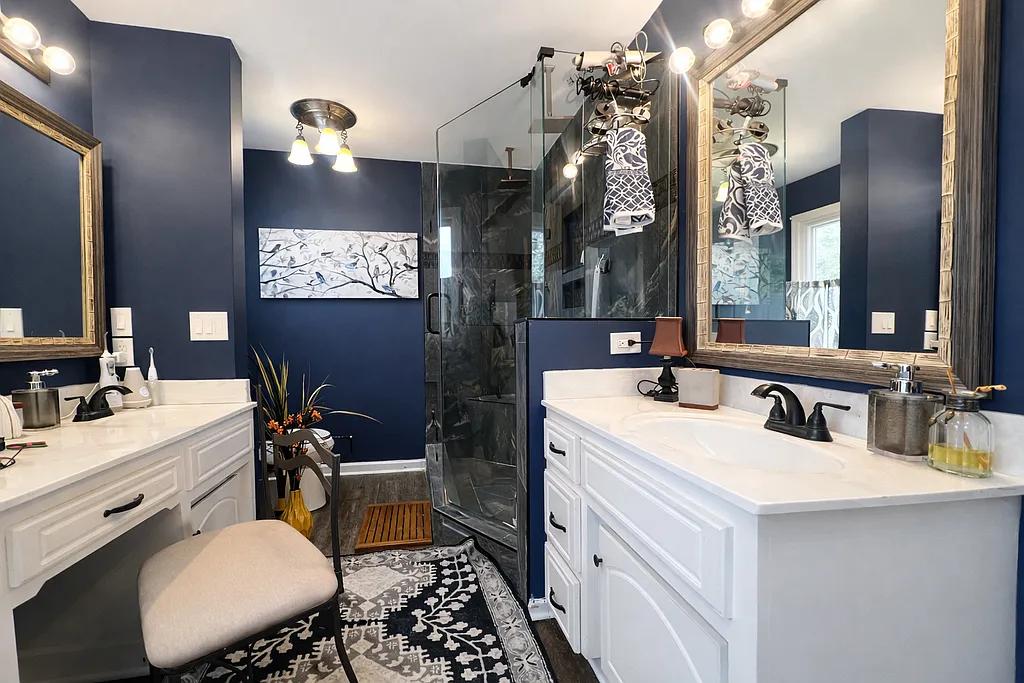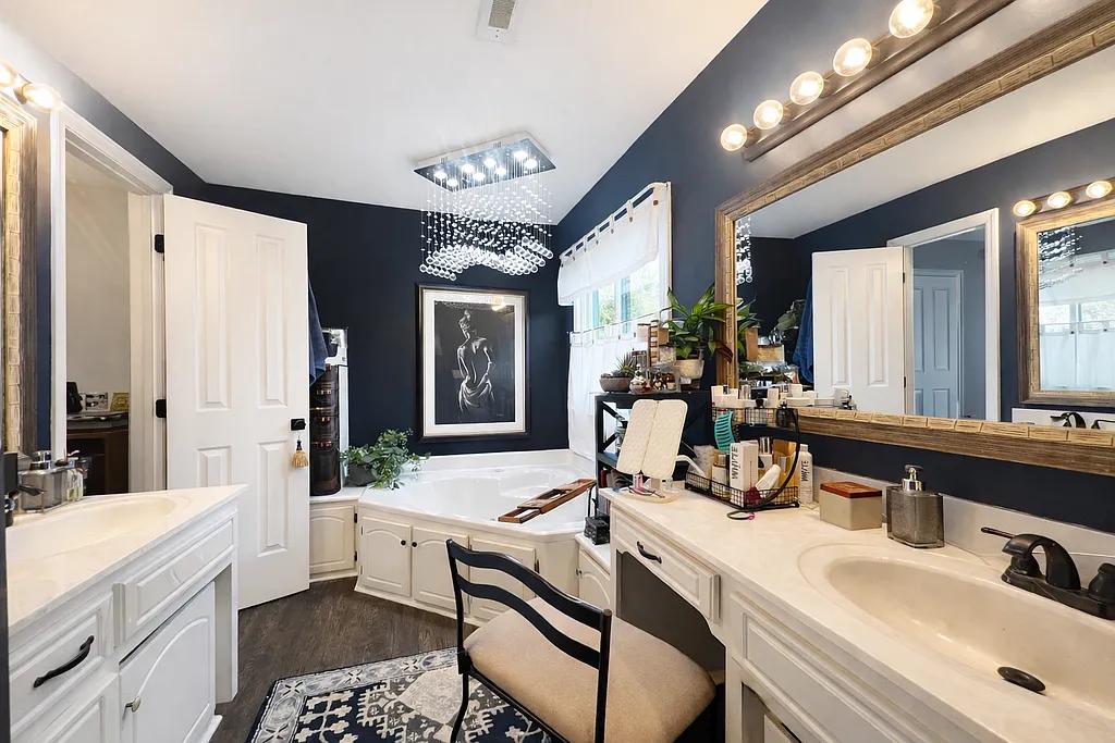 The luxurious primary bath offers a large walk-in shower, relaxing garden tub, and double vanities.