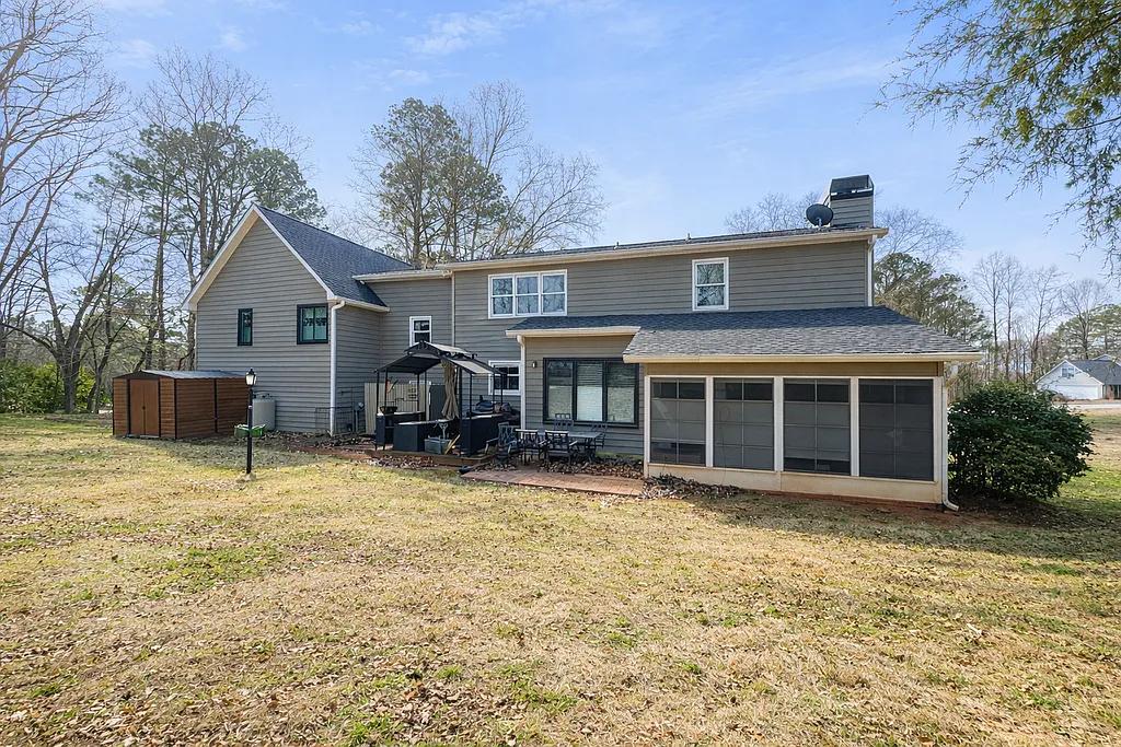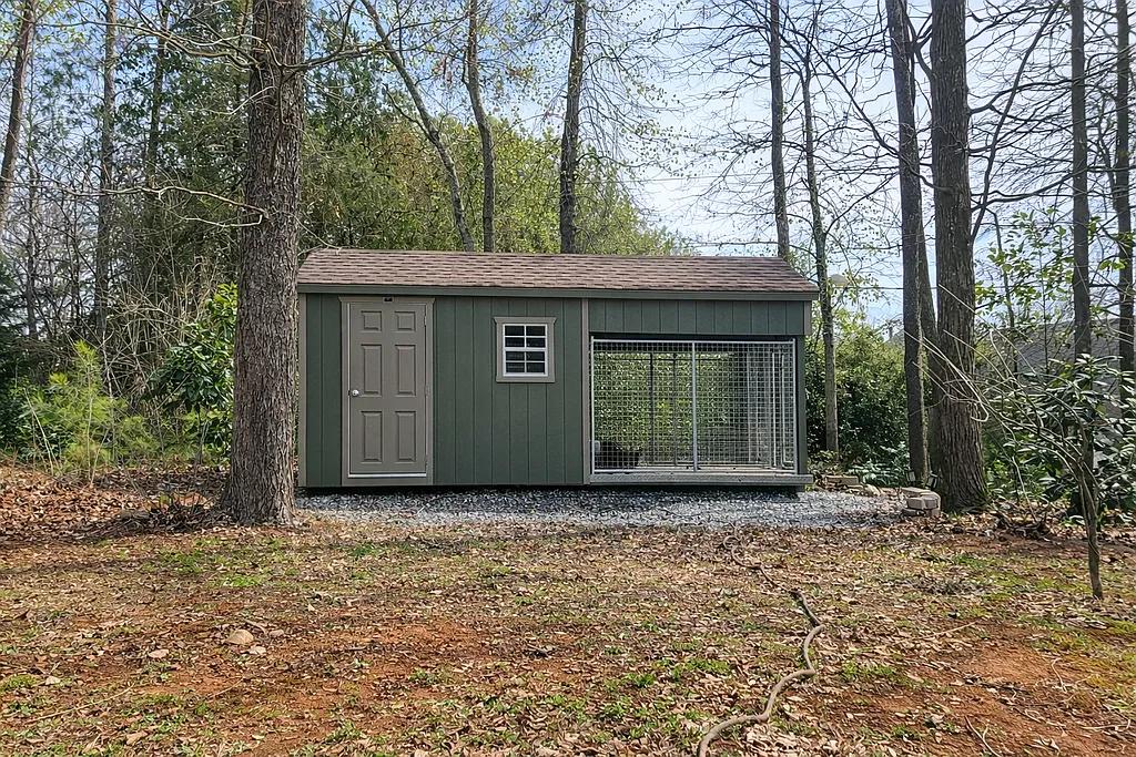 Outside, the property continues to impress with a large detached shed equipped with heating and air, currently used as a dog kennel, complete with a dedicated washing station for pets or animals.