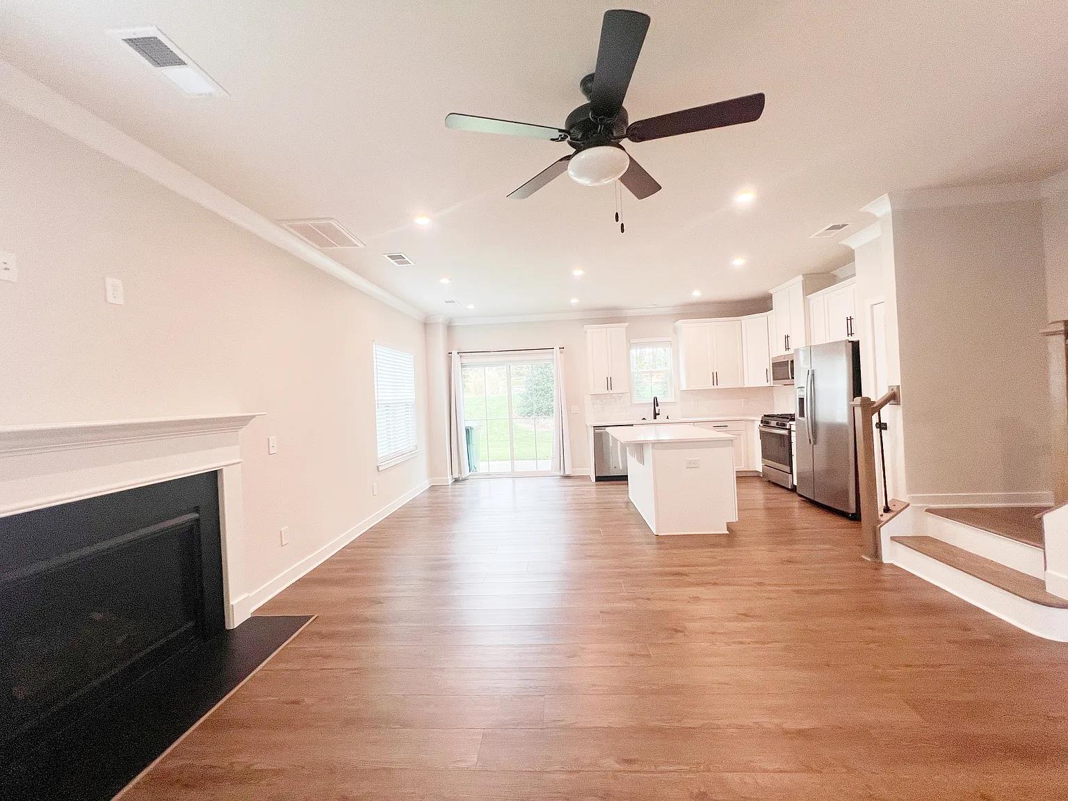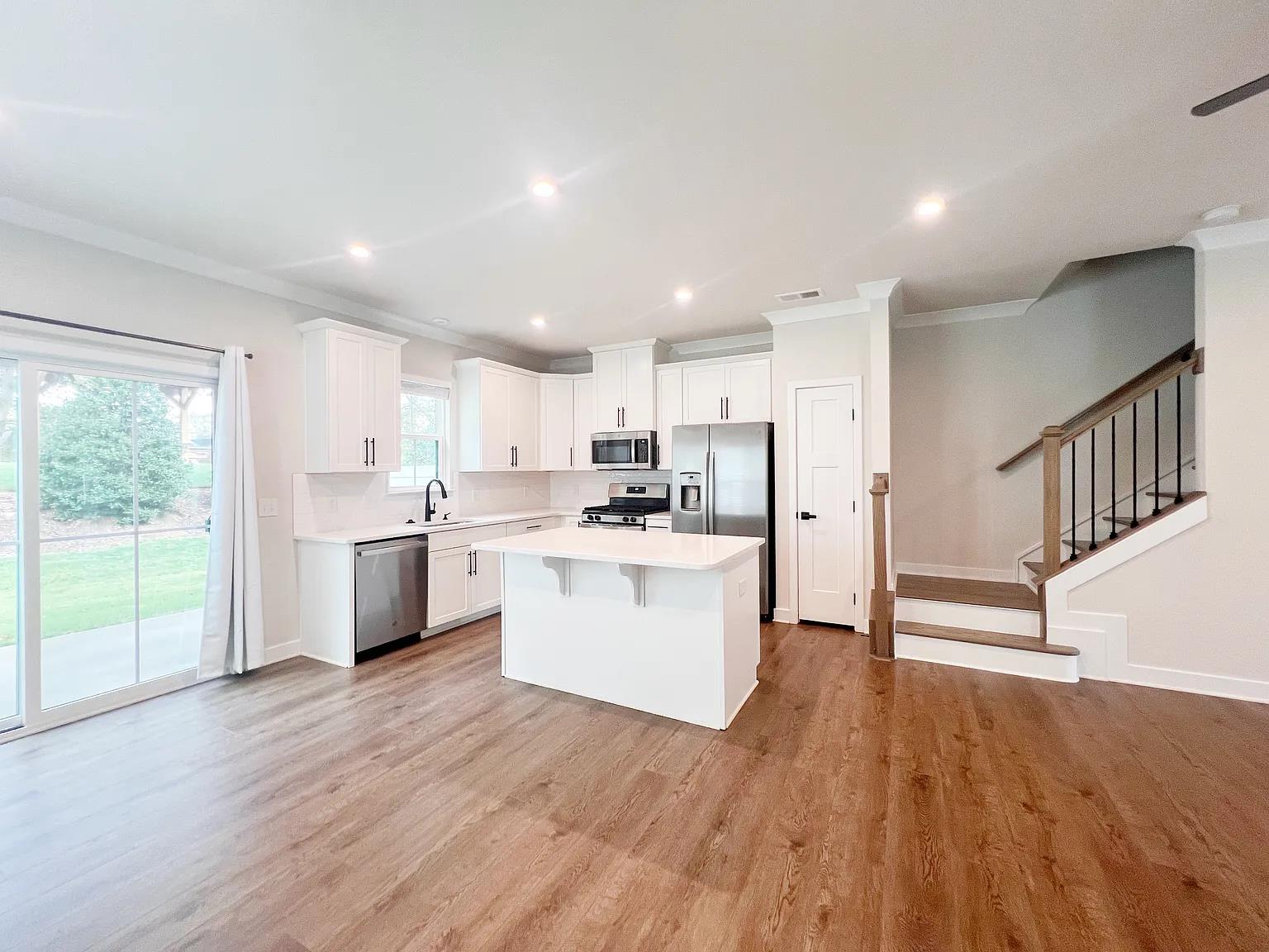 This luxury townhome is located in the wonderful town of Mauldin South Carolina and has three bedrooms and 2 1/2 baths. If you pull up to the townhome, you can see that they spared nothing with the upgrades to this property. The inside has just gorgeous finishings. The townhome is absolutely stunning. As you enter the home, you have a grand foyer and luxury vinyl flooring. Make your way to the much sought after open floor plan concept. The kitchen is a gourmet chef dream with an overabundance of beautiful white kitchen cabinetry, custom backsplash, quartz countertops, gas cooktop, stainless steel appliances, large pantry, and a large island with seating that overlooks the dining/breakfast room and the great room with a log of fireplace. To round off the first floor you have a large walk-in closet for extra storage, coat closet and a half bathroom. As you make your way upstairs, there's a landing that leads you to the master suite that is large enough for a seating area, extra large walk-in closet and a master en suite. The master en suite has an extra tall double sink vanity and a large walk-in shower. There are two additional bedrooms upstairs that shares a bathroom with tub shower combo. To finish off the upstairs there is a walk-in laundry room with washer and dryer. Off the breakfast dining area is a nice patio. Right behind the patio is the community gathering. This area has a covered shelter with seating for picnics and a nice fire pit with chairs surrounding the fire pit. This home is in the fabulous location.